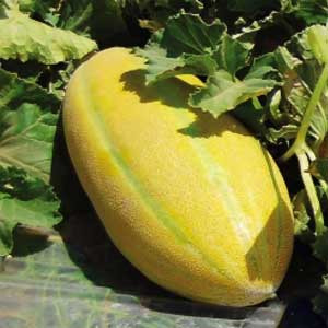 این نوع خربزه یکی از پرفروشترینها در ایران است. برگها ساده و متناوب، تقریباً گرد و تا حدی قلبی شکل هستند و ممکن است دارای ۳ تا ۷ لوب کم عمق باشند. معمولاً این برگها بین ۶ تا ۱۵ سانتیمتر طول و بین ۵ تا ۱۵ سانتیمتر عرض دارند. میوه بیضی شکل یکنواخت و کشیده است و رنگ پوست زرد و رنگ گوشت سبز روشن است.