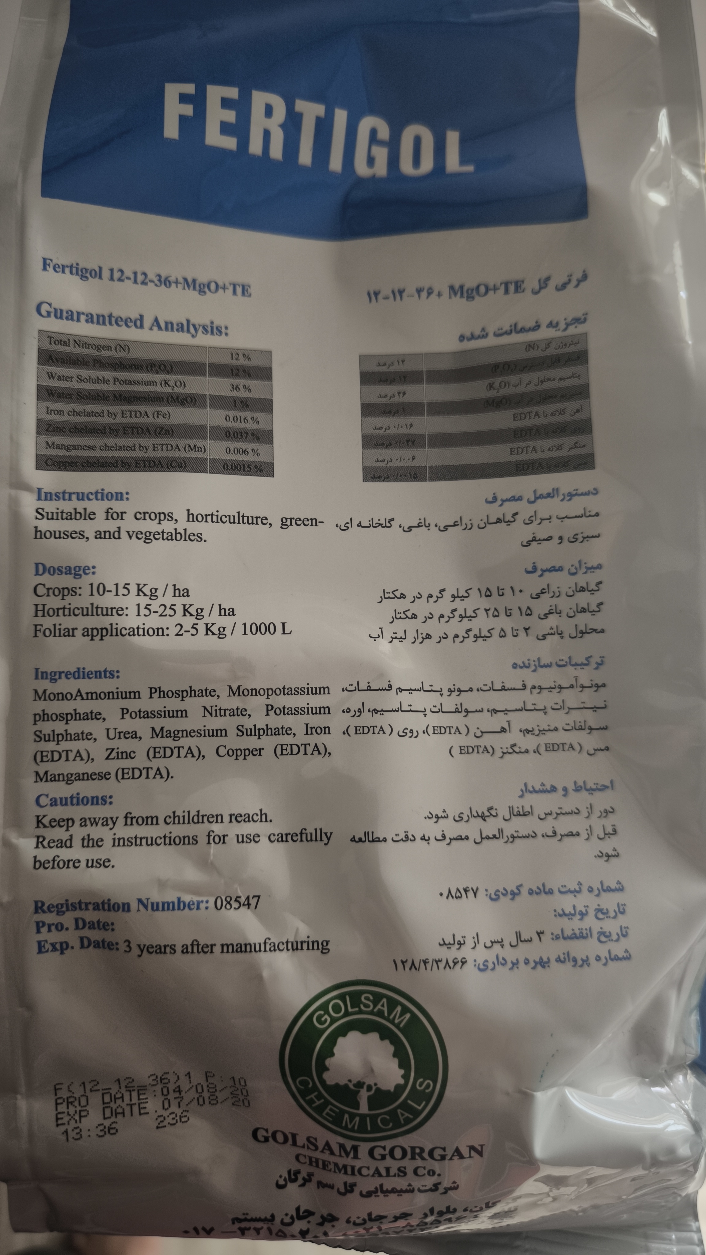 کود کامل زایشی حاوی عناصر ازت، فسفر، پتاسیم (با درصد بالا) و کلیه عناصر ریزمغذی به فرم کلاته