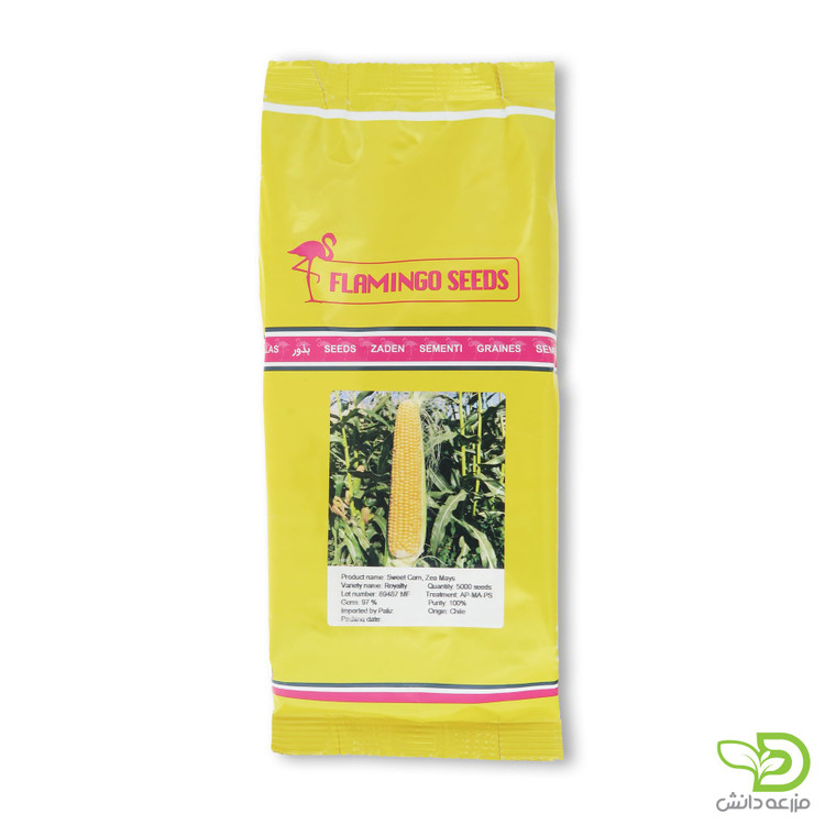 بذر ذرت شیرین رویالتی رقمی هیبرید و مناسب جهت مصرف دانهای است که توسط شرکت فلامینگو سیدز استرالیا تولید میشود. این بذر ذرت زودرس بوده و طول دوره رشد حدود 75 روز بعد از کاشت بذر میباشد. به دلیل دانهبندی زیبا و قوی و حفظ کیفیت دانهها تا انتها مورد توجه واقع شده است. پوشش غلاف بلالها بسیار زیبا با یکنواختی در رنگ و اندازه بوده، طول بلال بدون پوشش 25 سانتیمتر و مناسب جهت مصرف دانهای میباشد.