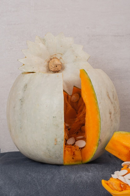 این کدو داخلش نارنجیه و شیرینه و مناسب هست برای انواع کیک و شیرینی و نان و دسر سوپ انواع پلو.