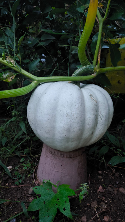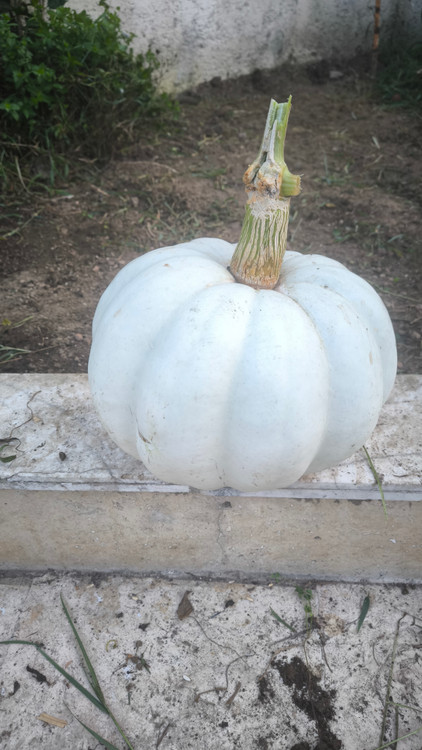 کدو حلوایی بزرگ سفید رقم لمونیا معروف به خرس قطبی به خاطر اندازه بزرگ و رنگ سفیدش